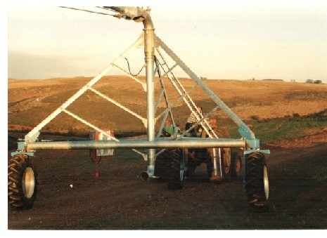 The tripod is made from heavy duty 165 mm galv. pipes and 100 x 75 x 10 angle. The tripod is equipped with a heavy duty tow bar that attaches easily to any of the 3 wheels.