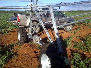 Not only flexes up and down and back and forth, it can also twist to accommodate tension stresses, common on rough ground. This flexibility is a principal reason why the Kimberley pivot will operate on slopes of up to 30%.