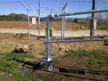 The electrical system is designed and manufactured by WA Services. It’s a very simple system. The 1 tower pivot uses only 4 core cable and the 2 tower uses a 9 core cable.